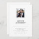 Minimalist wedding invitation in a simple typography design in dark grey and white. Add a photo of the happy couple and their names in a bold font and details in a thin modern font. A clean look for your wedding.