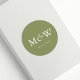 Plain Modern Moss Green Classic Monogram Wedding Round Sticker