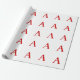 Plain Modern White Red Monogram Initial Letter Wrapping Paper