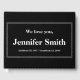 This conservative funeral or memorial guest book features the message "We love you,", along with a custom name, and birth/death dates. It could be used to record fond memories of somebody who has recently passed away.
