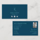Plain Ocean Blue with Monogram Photo and Jewels Business Card