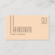 Make a lasting impression with this classic and simple business card design with fine decor stripes, monogram and (employees-) photo on a plain pastel peach background.