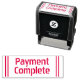 This minimalist rubber stamp design features the message "Payment Complete". It could be used to mark an invoice or bill as having been paid in full.