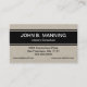 This plain professional business card features a tan background with a black stripe on the top where your name and title appear. Below all your important business information is listed in black on the tan background. Your clients will remember your name and title, as it stands out in white on the black stripe. Copyright henishouseofpaper