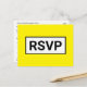 This plain and minimal RSVP postcard design features the message "RSVP" on the front. It also features a customisable RSVP form on the back for the recipient to complete, along with a customisable address that the completed RSVP cards would be mailed to. RSVP cards like this could perhaps be used to find out who will be attending a Christmas party, a wedding shower, a birthday party, a baby shower, or some other celebration.
