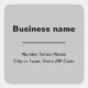 Simple and plain texts designs are often easy to understand and remember. Plain texts design and customisable sticker that you can use as marketing material to advertise your business or to promote your brand name to customers or clients. Customisable sticker that you can use to build brand name awareness. You can also use it as accessory of product packaging materials. Designs are black plain texts on grey background and square shape. Contents are your business or company name and address. Please check the appearance after typing texts. If the appearance is pleasing to you, you can place your order now. If you need to resize and move the texts to fit on this sticker or on other sizes that you will choose, please change in the design tool. You can also make other changes according to the appearance that you prefer in the design tool such as changing the background colour, font colour and font style.