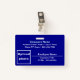 Plain texts design badge with employee photo that you can customise for you and your employees. Design colours and shape are light blue and white texts on blue background and landscape format rectangle shape. To customise this badge, type your business or company name, address, phone number, employee name, employee title, employee ID number and upload employee photo. After typing texts and uploading photo, please check the appearance on front and back sides. If the appearance is pleasing to you, you can place your order now. If you need to resize and move the texts and photo to fit on this badge, please change in the design tool. You can also make other changes in the design tool according to the appearance that you prefer such as changing the background colour, font colour and font style.