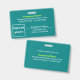 Plain texts design badge with employee photo that you can customise for you and your employees. Design colours and shape are yellow-green and white texts on teal green background and landscape format rectangle shape. To customise this badge, type your business or company name, address, phone number, employee name, employee title, employee ID number and upload employee photo. After typing texts and uploading photo, please check the appearance on front and back sides. If the appearance is pleasing to you, you can place your order now. If you need to resize and move the texts and photo to fit on this badge, please change in the design tool. You can also make other changes in the design tool according to the appearance that you prefer such as changing the background colour, font colour and font style.