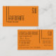 Make a lasting impression with this classic and simple business card design with black font & fine decor stripes and monogram on a plain orange background.
