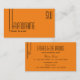 Make a lasting impression with this classic and simple business card design with black font & fine decor stripes and monogram on a plain orange background.