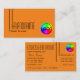Make a lasting impression with this classic and simple business card design with black font & fine decor stripes and logo on a plain orange background.