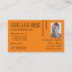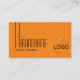 Make a lasting impression with this classic and simple business card design with black font & fine decor stripes, logo and (employees-) photo on a plain orange background.