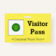 This conservative badge design features the message "Visitor Pass", and a customizable company name or other custom message. A badge like this could perhaps be used to indicate that a person is a known and authorized guest or visitor at a business or workplace. [~Z0000307]