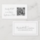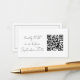 Wedding reply enclosure cards with QR code template. Customise modern script text on both sides of white cards. Ask guests to reply by a certain date and upload your own QR code they can use to access your wedding website and reply to the invitation online. The other side of the card contains names and a place to include the website URL for those who prefer not to scan.