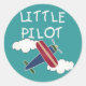 An aeroplane flying through the clouds and text that reads "Little Pilot" on aeroplane themed cards, t-shirts, and more, great for kids who love planes and flying!