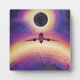 Plane in flight city and eclipse plaque
