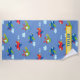 Planes, Helicopters & Clouds Artwork on Blue, Name Beach Towel