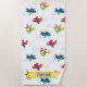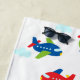 Planes Helicopters Clouds Artwork on White, Name Beach Towel