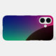 This awesome iPhone case features a digitally created image that resembles the crescent of a dark planet surrounded by a cosmic aurora of green, blue, purple and pink.