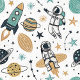 Playful rocket ships, planets, and stars in a vibrant space theme