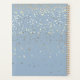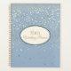 This planner notebook is shown with a petite Champagne stars print on a Antique Blue coloured background. Personalised name for you to customise to yours inside an Ivory oval with dual coordinating coloured borders on the front of neo mint, steel, matte gold text. Back same colour and stars print.