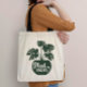 This tote bag features a simple green silhouette of a potted plant with the saying "Plant Mum" in white, set a retro styled script font inside of the pot. The perfect tote for plant lovers!