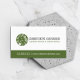 A collection of leaves and flowers peak into a green circle for a unique logo on this business card for gardeners or landscaping companies. The double-sided card provides plenty of space on the backside for your contact info and details. Art and design © 1201AM Design Studio | www.1201am.com