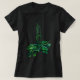 T-Shirt featuring floral art, glowing green shoots and leaves of plantain on black background. pastel paiinting in green and black colours, summer greenery.