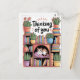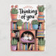 Plants, Cats And Books - Bookish Cat Aesthetic - Cat On A Bookshelf Thinking Of You Cards