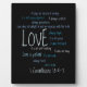 This attractive plaque features lines from 1 Corinthians 13:4 "Love is patient, Love is kind..." randomly placed on the plaque.