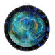 A fractal image composed of blue, lightning-like, electrical discharges in a sphere.
