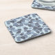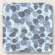 This hard plastic coaster set is shown with a lovely blue tones abstract print design.