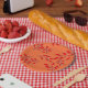 Plates with Berries and Leaves on Orange
