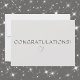 A simple yet charming all occasion 4.5"x6.25" congratulations flat card with sender's name and address on back. Easily change or remove the text using the Template provided. The front and back background is a platinum colour. White envelope is included or mark "none" for reduced price. Also available in many sizes. Highly rated and excellent print quality. See "About This Product" at side for more information. High school or college graduation, engagement, weddings, news of pregnancy, new baby, anniversary milestone, first home, promotion, retirement celebrations.