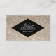 A warm platinum/silvery glitter background image provides a glamourous backdrop to this beauty-themed business card template. Your name or business name is elegantly styled in a faux gold trimmed nameplate for a classy logo. A stylish design motif for beauty salons, nail designers, makeup artists, cosmetologists, fashion stylists, boutiques and more. © 1201AM CREATIVE