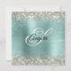 Platinum Glitter Pale Turquoise Foil Monogram Invitation