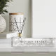 Elegant desk nameplate features a silvery grey background with a burst of white bokeh lights cascading from the top. Personalise with your name and title or business name in classic black lettering.