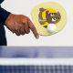Ping Pong Paddle with illustration of head of platypus in yellow circle,  cute Australian wild animal design for kids by Maxi Harmony