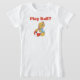 A cute dog plays with a ball and red text reads "Play Ball?" on dog T-shirts, bodysuits, mugs, cards, stickers, puppy dog tote bags, and much more.