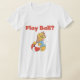A cute dog plays with a ball and red text reads "Play Ball?" on dog T-shirts, bodysuits, mugs, cards, stickers, puppy dog tote bags, and much more.