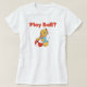 A cute dog plays with a ball and red text reads "Play Ball?" on dog T-shirts, bodysuits, mugs, cards, stickers, puppy dog tote bags, and much more.