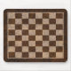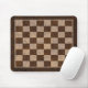 Take a break and play Chess on this mousepad. This design features the effect of a rich dark wood veneer with an inlaid eight by eight square chequered board of alternating decorated brown and cream tiles representing the dark and light squares of a chessboard, draughts board or checkers board.