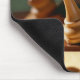 Chess Mousepad showing wooden King, Queen, Knight and pond on a wooden chessboard. It has the inscription "Play!" on it.