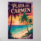 Playa del Carmen Illustration Travel Art Vintage Poster