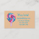 A business card suitable for a indoor play centre business or play centre featuring a large happy lollipop in watercolor painting style. The background colour can be changed to suit your taste. This card is fully customisable and your personal details can be included in the text.