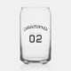 Create your own custom, personalised, cool stylish black typography / font / script, monogrammed, game day party / sports win celebration player name jersey number, cool stylish, durable clear glass, lead-free glassware, 16 oz unique classic beverage can design beer pint can glass. Simply type in your name / player name and player jersey number, to customise. Makes a great gift for birthday, graduation, fathers day, christmas, holidays, family reunions, friendship day, dinner parties, holiday gatherings, summer BBQ, milestone birthdays, and more, for your loved ones, boyfriend, dad, grandson, son, brother, godson, nephew, teams, club, league, teammates, athletes, soccer / football / hockey fan, player, coach, sportsmen, sports enthusiasts, beer lovers, collectors, friends and family.