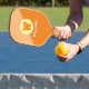 Cool pickleball-paddle with your own name and initial on it... editable colours... light yellow and orange modern logo design.