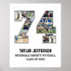 Personalised photo collage for player number 74. This customisable photo gift is perfect for senior night, sports award banquet or birthday gift for your athlete son, daughter or student. It's a great way to display precious moments and memories from their sports games. The poster features a collage of photos, and it can be customised with names, school teams, class year or any custom text. It makes a unique and meaningful gift for football team, basketball team, baseball team, soccer team, volleyball team, softball team or any sports team with player number.