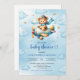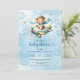 Playful blue pilot teddy bear boy shower invites