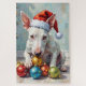 Playful Bull Terrier Dog Guarding Christmas Jigsaw Puzzle
